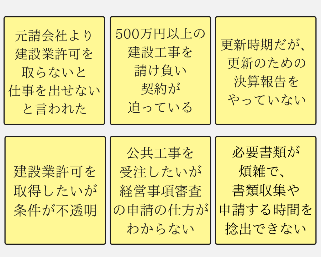 建設業許可に関して、こんなお悩みございませんか?