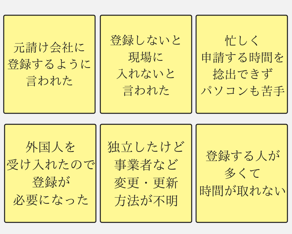 建設キャリアアップシステムの登録をしたい方、こんなお悩みはございませんか?